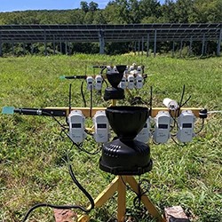 在移動(dòng)式太陽能電池陣列下,美國大學(xué)的團(tuán)隊(duì)正在利用霍博尼特系統(tǒng)追蹤紅莓、干草和蔬菜的生長條件。他們看到了溫度等變量, 土壤濕度 ,相對(duì)濕度, 蒸散 ,光的不同,觀察這些條件如何影響作物產(chǎn)量和性能。